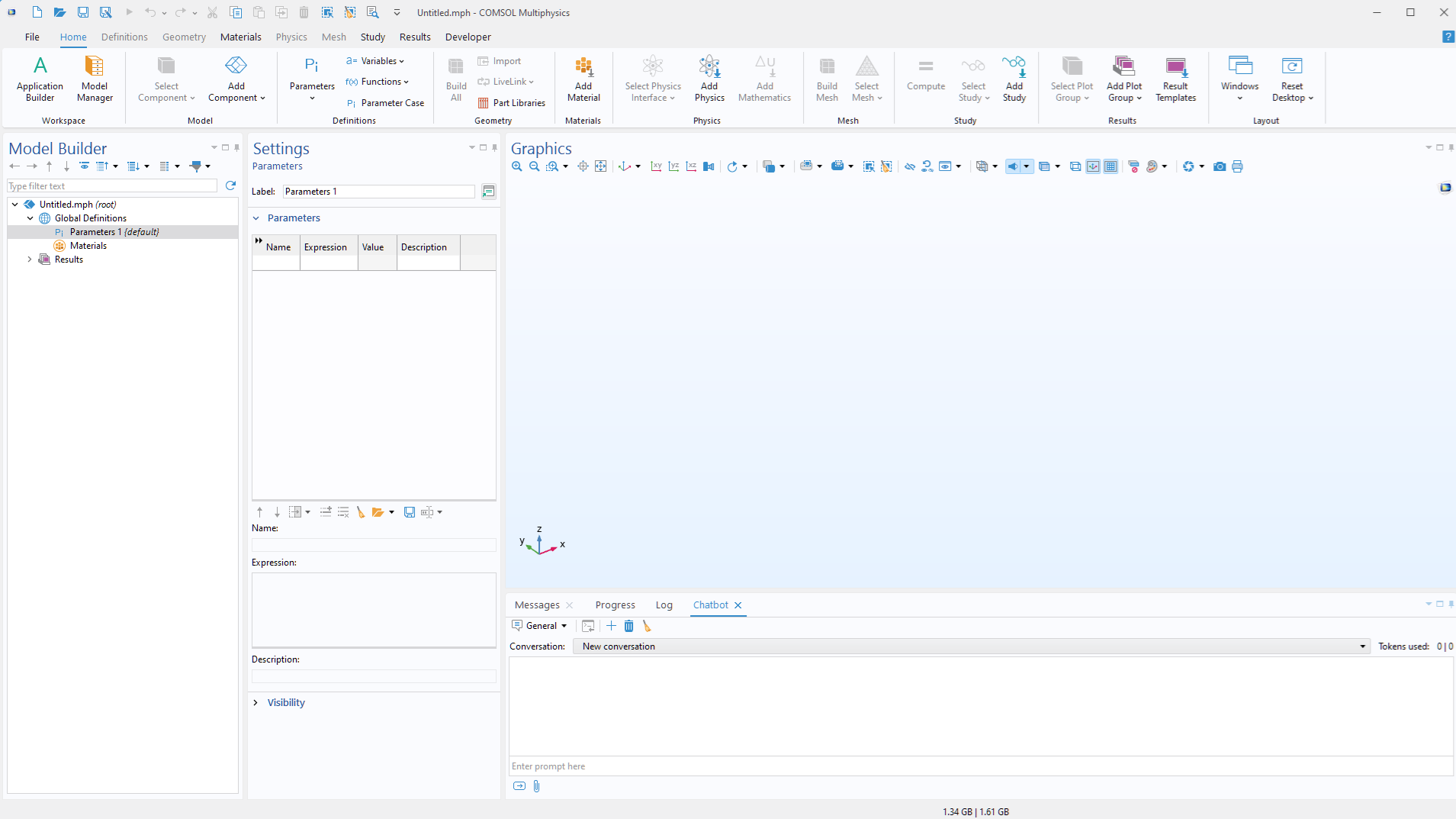 The Chatbot window is available for the Windows® version of COMSOL Multiphysics®. It is included in the platform product but is not installed by default. (Instructions on how to install and set up the Chatbot window can be found in this Learning Center article.)